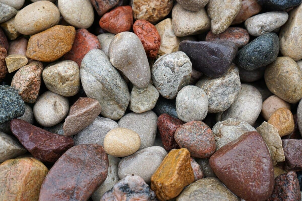 1 1/2" American Heritage rock is a decorative, crushed stone featuring a natural blend of earth-tone colors, including shades of brown, tan, gray, and red. This larger-sized rock is commonly used for landscaping, erosion control, drainage solutions, and decorative ground cover in garden beds and around trees. Its angular shape helps it lock in place, providing stability while allowing for proper water drainage. The rustic and natural appearance of American Heritage rock complements a variety of outdoor designs, adding texture and contrast to any landscape.