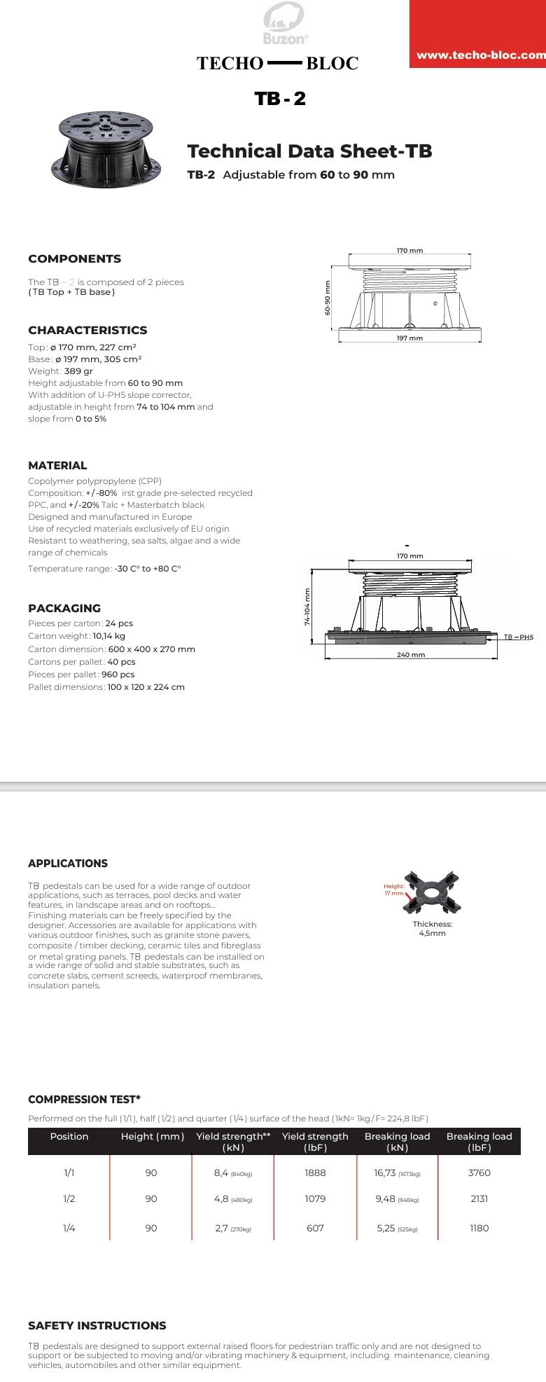 BUZON - TB-2 PEDESTAL KIT 60-90 MM