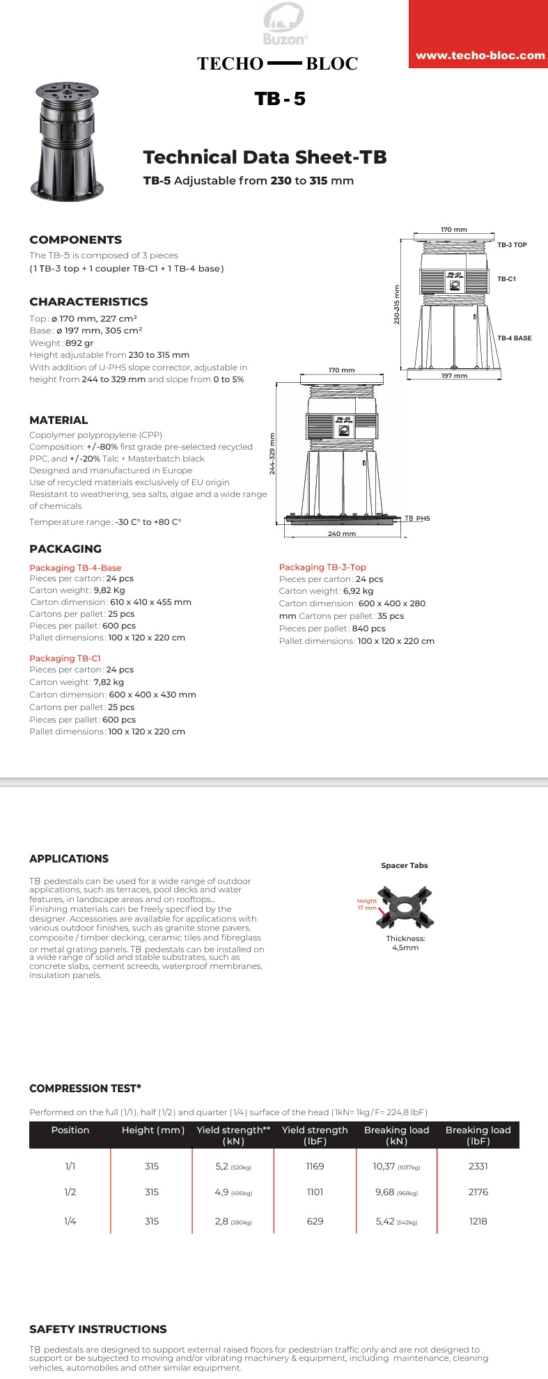 BUZON - TB-5 PEDESTAL KIT 230-315 MM
